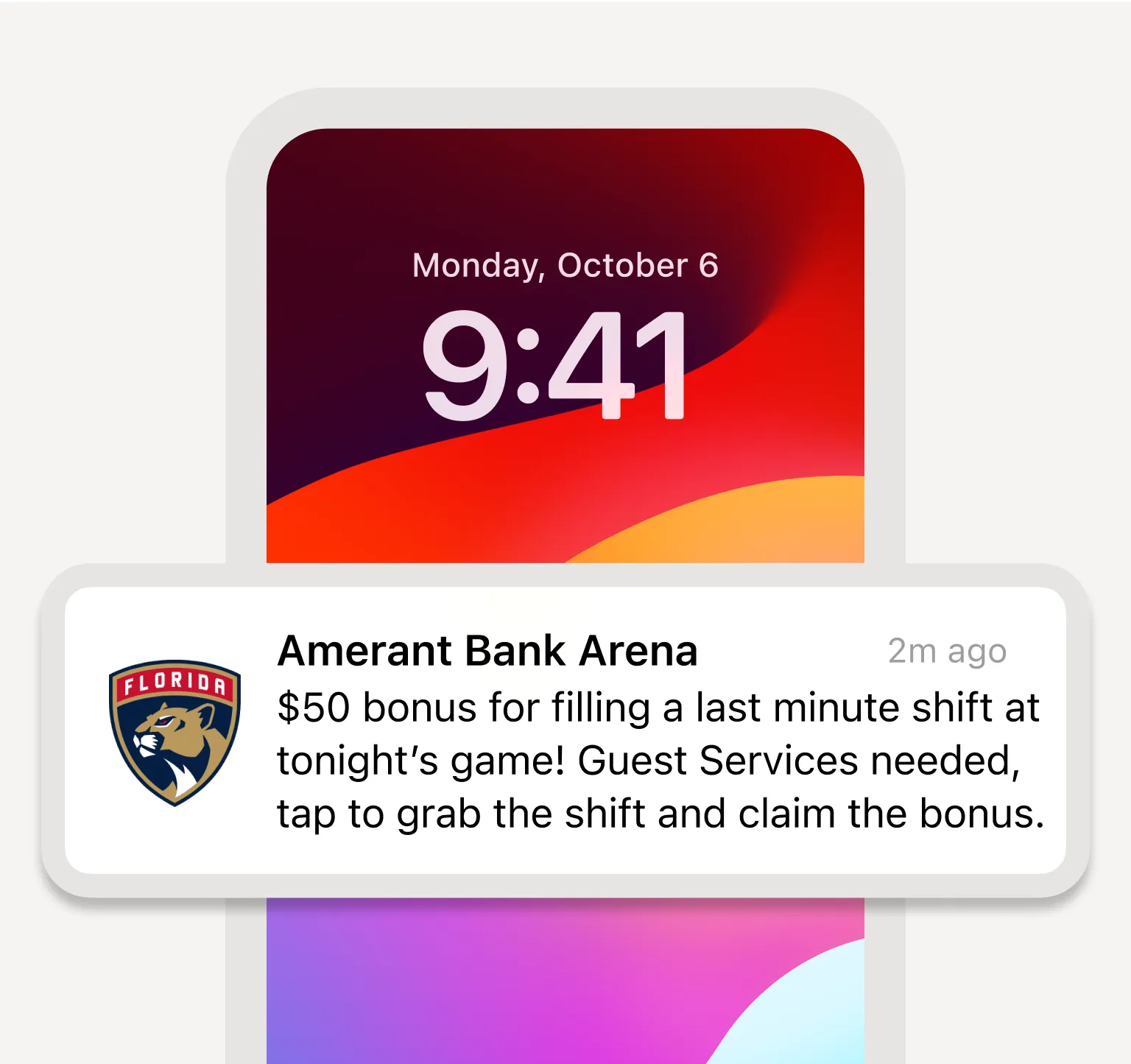 Trigger bonuses or alerts to fill last-minute callouts so no gate, bar, or section is ever left understaffed.