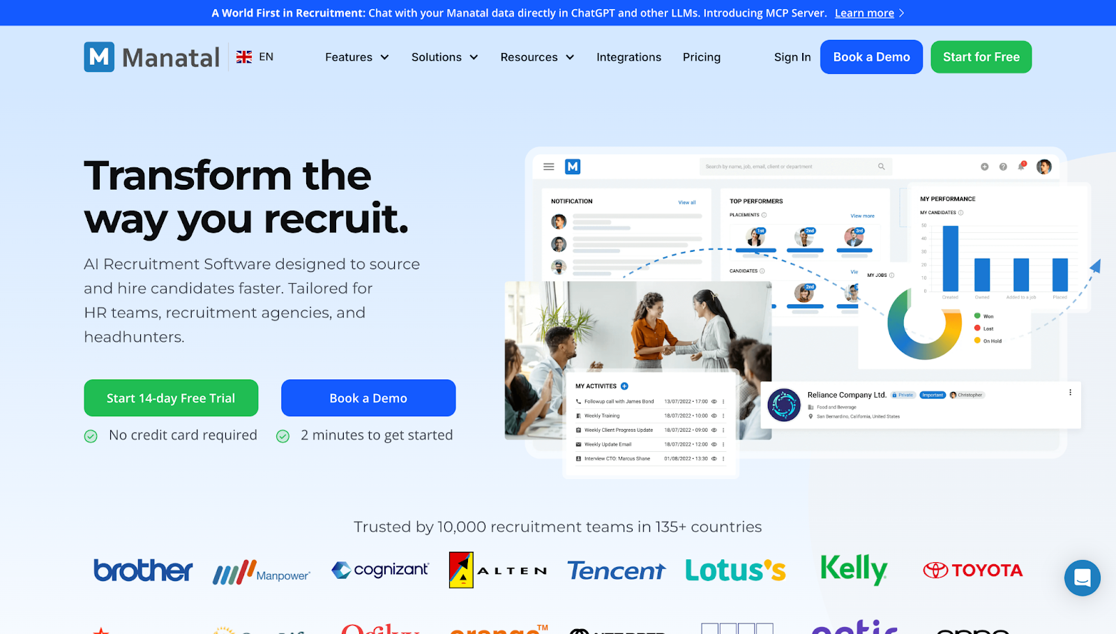 - Manatal: Provides modern AI capabilities and an easy-to-navigate interface suited for small teams with rapid-growth goals.