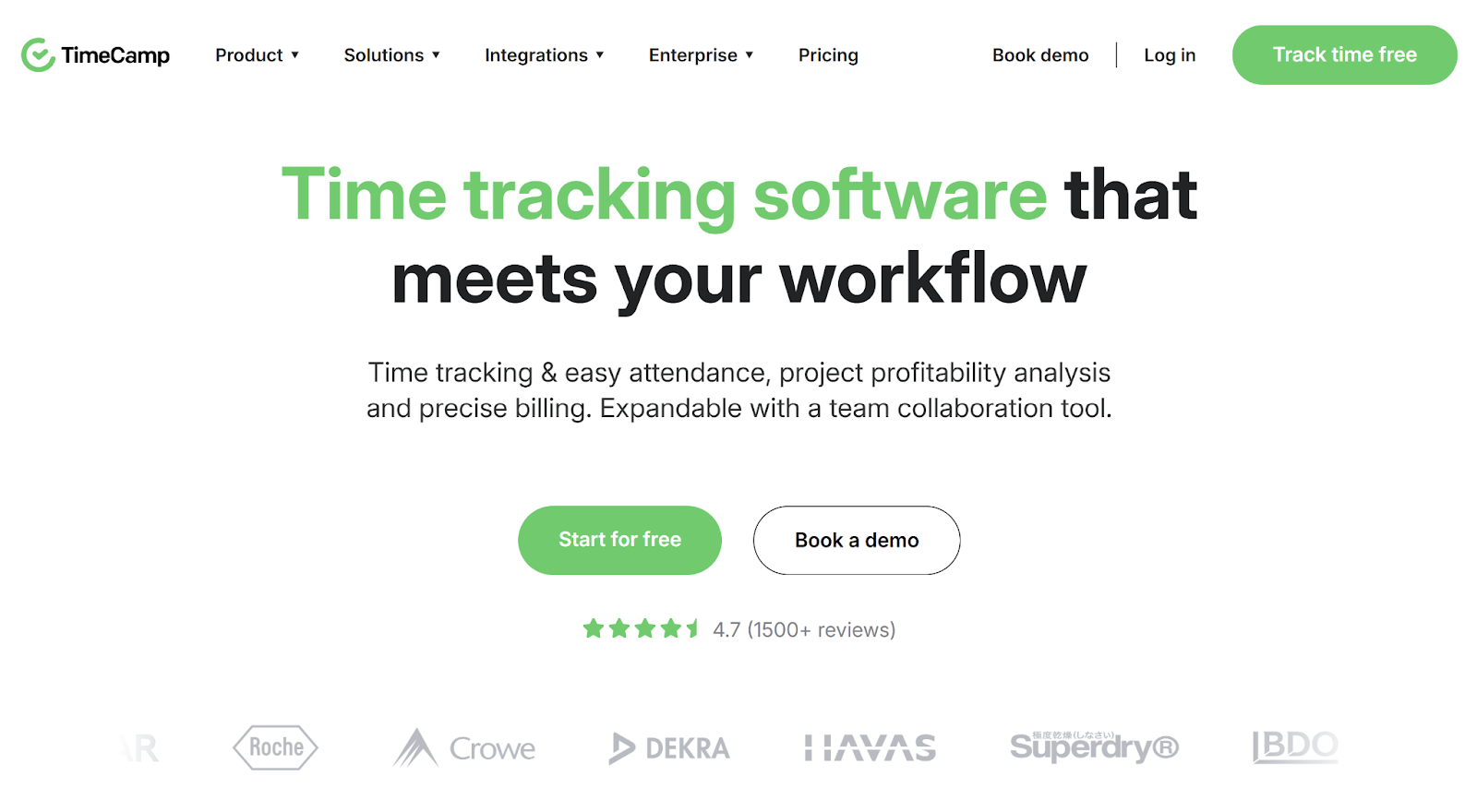 TimeCamp is a time-tracking app designed to help teams monitor attendance, productivity, and budgeting, particularly for project management. In addition to advanced time-tracking software, it offers employee oversight, overtime management, and activity monitoring for remote and hybrid teams. It also has tools for solopreneurs.