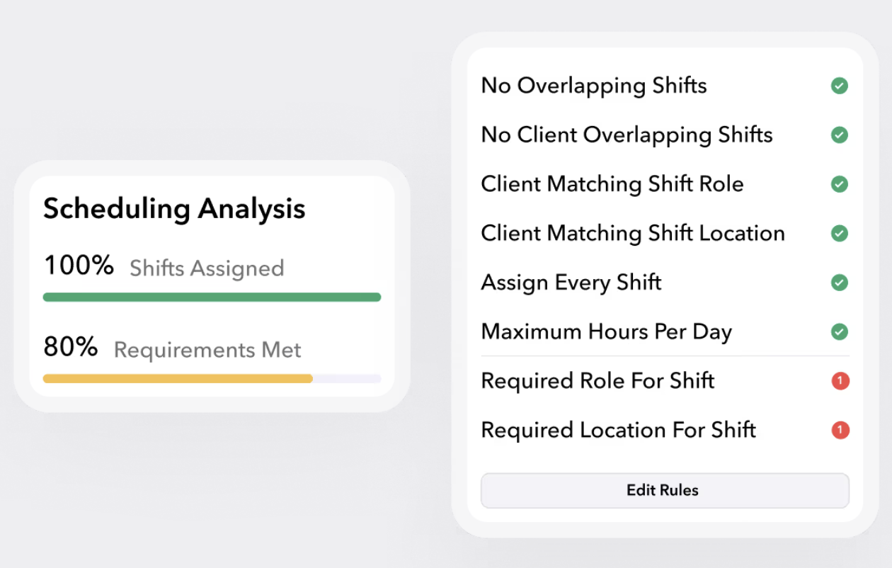Smart scheduling apps use configurable rules to make sure every scheduled job meets compliance, client, and workforce requirements.
