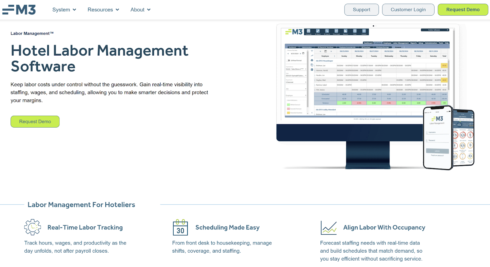 M3, a hotel accounting software provider, offers a labor management solution designed to control labor costs while providing real-time visibility into staffing, wages, and scheduling.