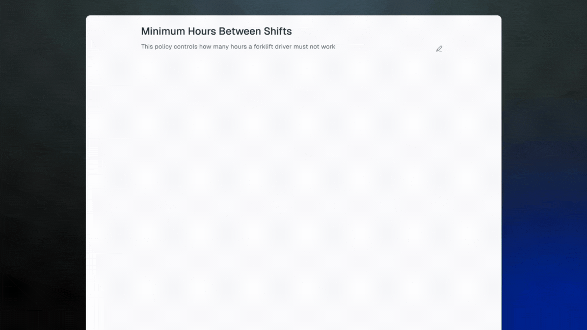 Policy Builder is a first-of-its-kind policy engine. It not only enforces your rules of the road, but helps you continuously optimize them. All you have to do is describe your guardrails in natural language, from complex union rules to credentialing requirements to scheduling limits, and Policy Builder enforces it across your entire business.