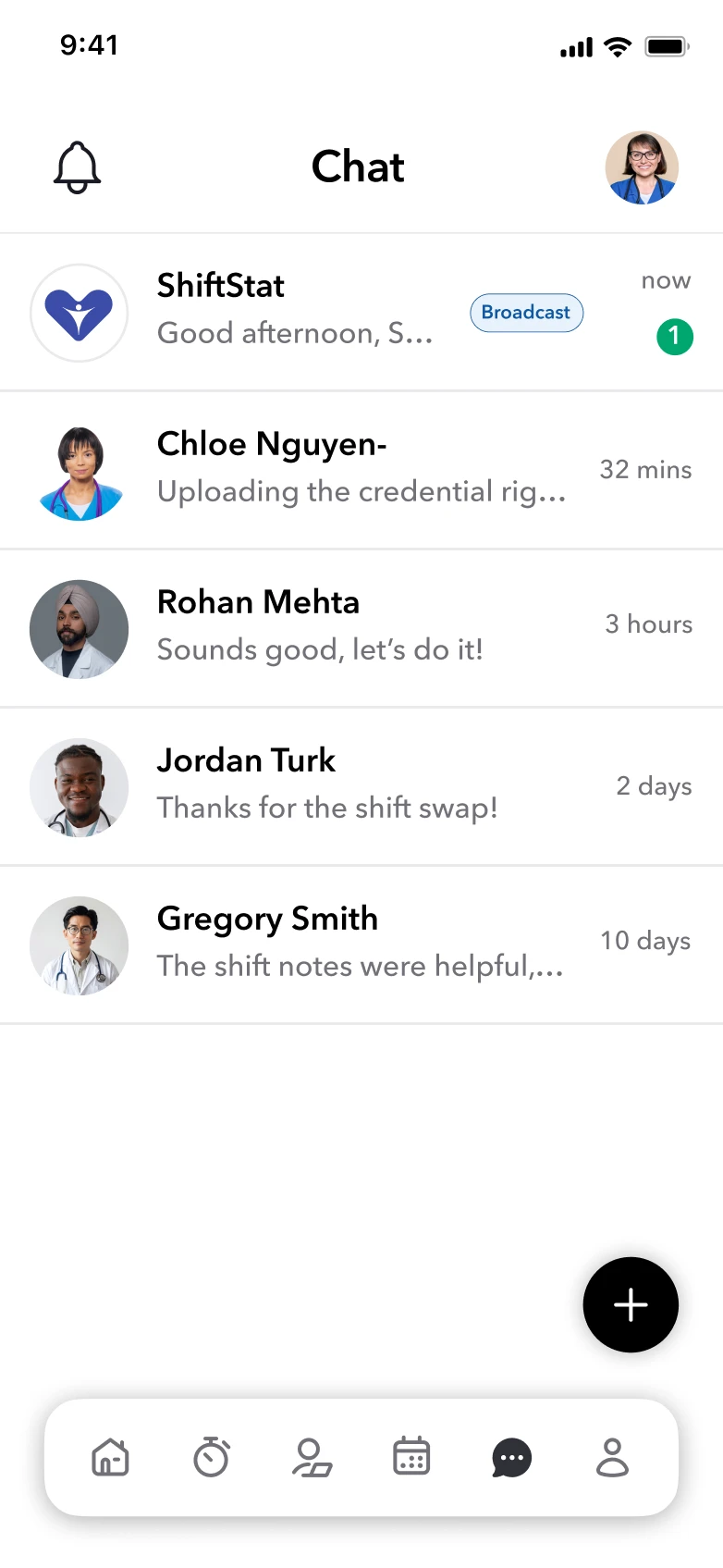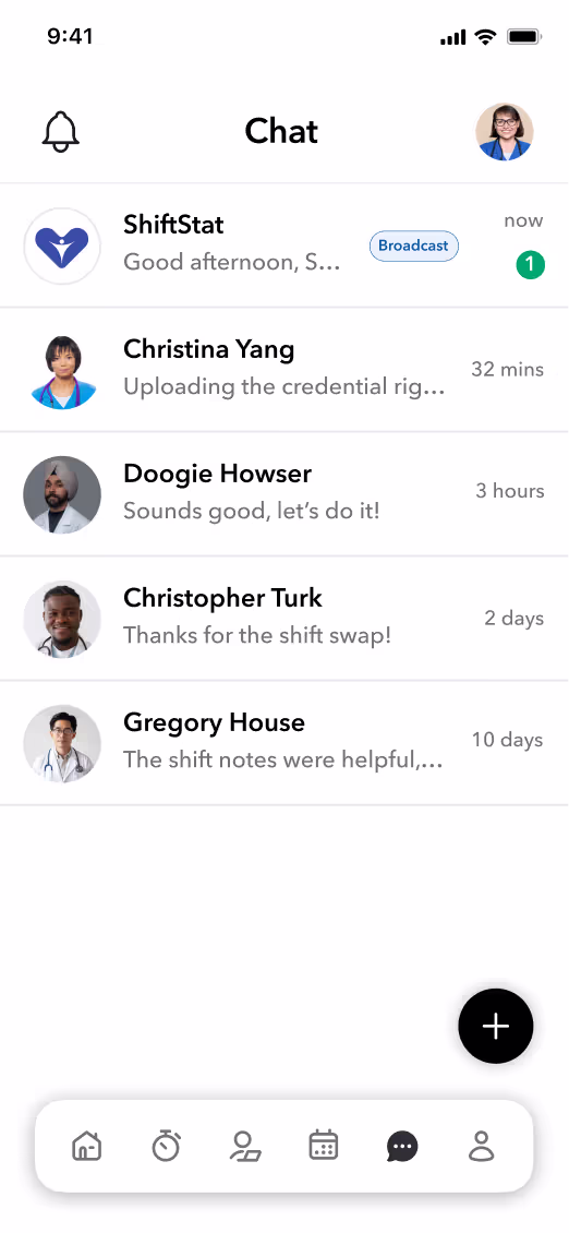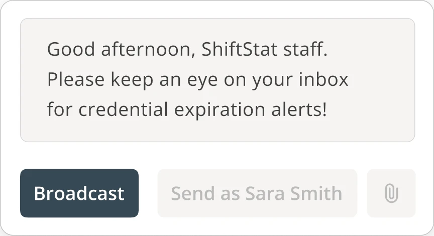 Reach your staff with SMS, in-app chat, broadcast, and push notifications (without ever being mistaken for spam).